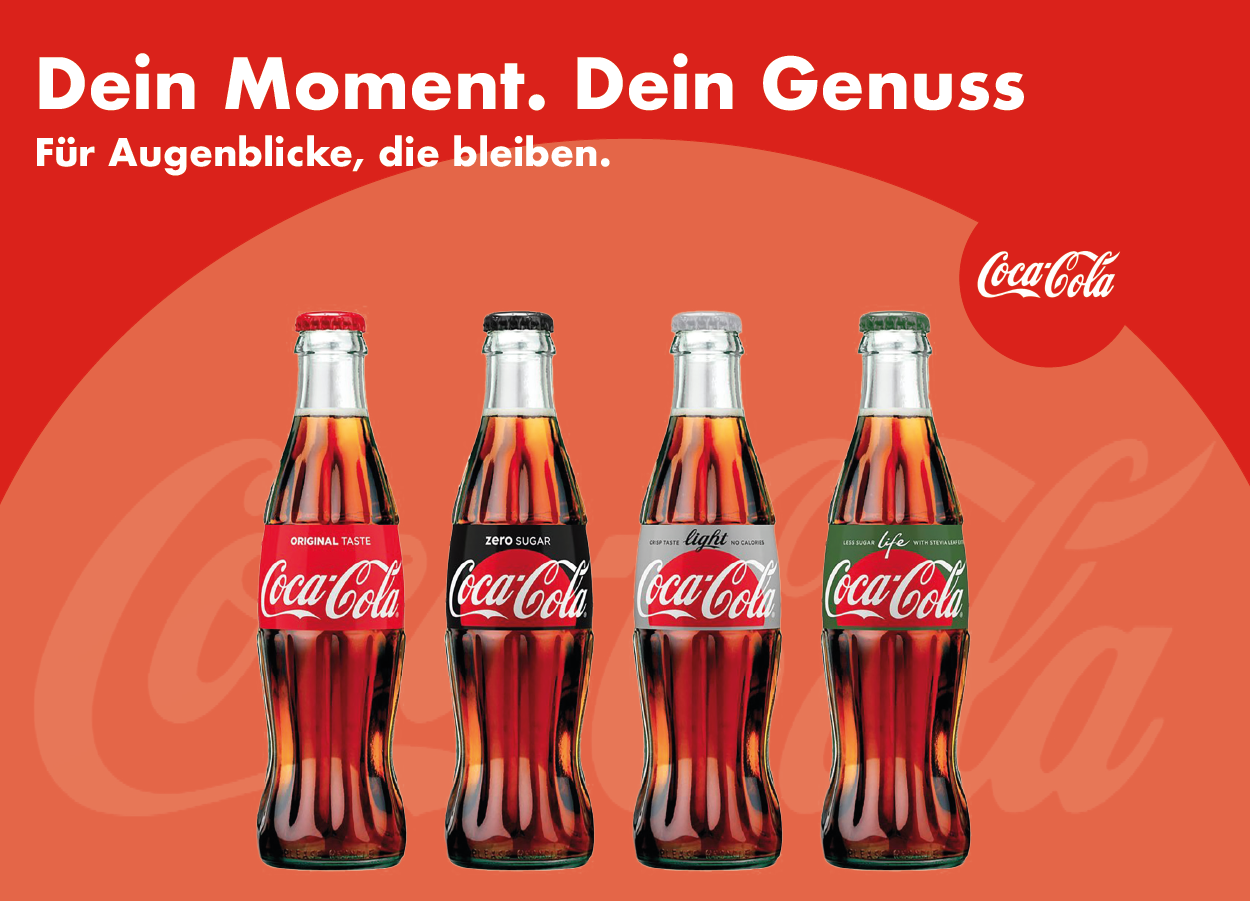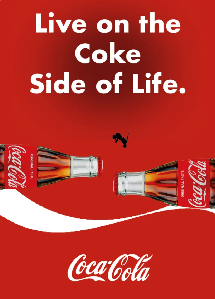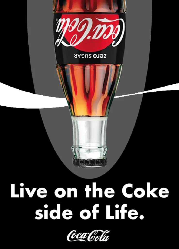 In diesem Projekt ging es darum die Variation des Produktes klar zur Show zu stellen. Jede Sorte steht für sich als eigenes vollwertiges Produkt. dennoch sind sie als große Familie zu verstehen. Der Titel „Live on the Coke side of Life.“ ist abgeleitet von Live on the bright side of Life. Es zeigt wie man mit COCA-COLA das Leben spannend gestalten kann.