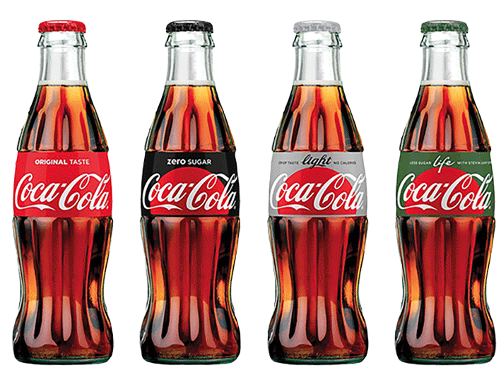 COCA-COLA, eine Gestaltung zur Darstellung der Variation und Cola-Familie In einem Bild und einer kleinen Plakatreihe.